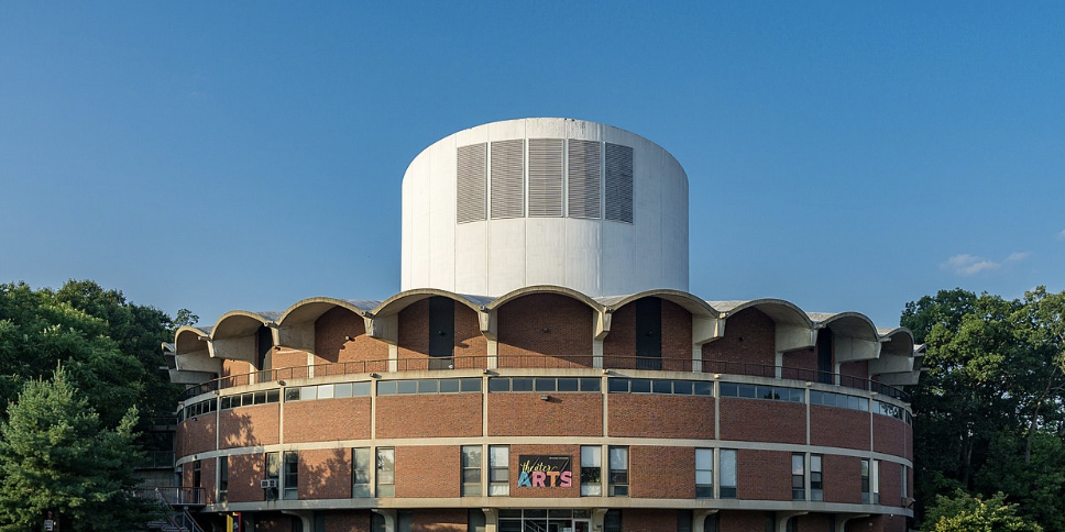 We call Spingold Theater the “cupcake building”. It is round with three theaters, rehearsal space and a dance studio in the center of the circle; classroom, costume shop, Green Room, dressing rooms on the floor below and scene shop on the lowest level (accessible from the lowest, parking lot level, with a large elevator to bring the set pieces up to the theaters). Since the theaters are back to back, it is not a thoughtful design, as the noise from one production (if it is loud) bleeds through the walls to the other theater back in the day when there might be multiple shows running at once (due to budget constraints, this no longer happens). But running around the circumference of the theater to find where you want to be, or how to get to the lower level can be confusing to the uninitiated. There is a narrow corridor from stage left out to the outside perimeter, but you need to know THAT door, and THAT corridor, otherwise you will get lost.