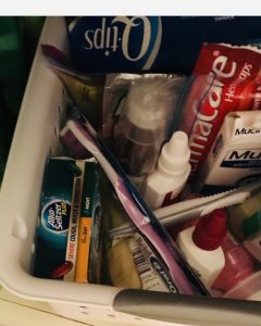 ME, downstairs: “It’s in the cabinet in the white bin on the left.”