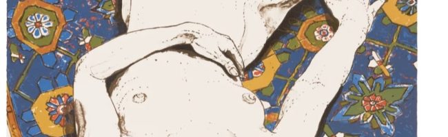 We had no intention of buying anything but one lithograph – Nude on Blue Rug – caught our eye, perhaps partly because we had a very similar rug in our bedroom! The price wasn’t exorbitant for an artwork – $3,000 – but we were younger then with a smaller bank account, yet we couldn’t resist the image and we bought it.