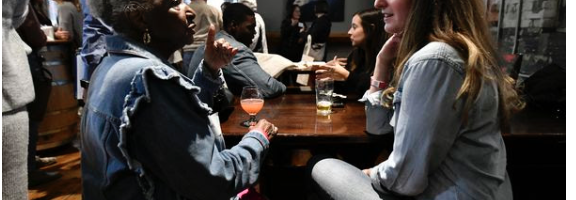 Finally, I got Dan downstairs and, much to his surprise, lots of people: friends and family did, indeed, yell, “SURPRISE!” And he was.