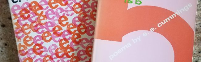 There are many poets whose work I cherish. For instance, Robert Frost. I can easily recite all four stanzas of “Stopping By Woods on a Snowy Evening” and most of “The Road Not Taken,” although I don’t recall ever intentionally trying to memorize them. I love anything by e. e. cummings. I don’t know any of his poems by heart. They don’t rhyme, which makes them harder to memorize. And his unorthodox spacing of words and lines makes his poems better to read than to hear anyway. My college boyfriend gave me two books of his poetry for our first anniversary, which I still take off the shelf and read from time to time. I also like to read women poets (or poets who happen to be women), like Emily Dickinson, Sylvia Plath, and Maya Angelou, to name a few.