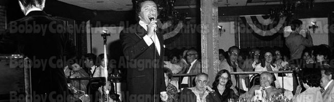 Billy Joel probably never ate at the Italian restaurant my family favored when I was young, since he grew up in New York, not New Jersey, but he must have had a similar place in mind when he wrote the song “Scenes from an Italian Restaurant.” Don’s 21 was located on McCarter Highway in Newark, which was also known as Route 21, and I assume that’s where the “21” in the name came from. The featured photo is of Al Martino, a popular Italian singer of the ’50s and ’60s, performing at Don’s. The picture, which I found online, was taken in 1979, after my family had left the Newark area, and when Al’s career was on a downward trajectory**, but it gives a sense of what Don’s looked like, with the white tablecloths, low ceilings, and tables crowded close together.