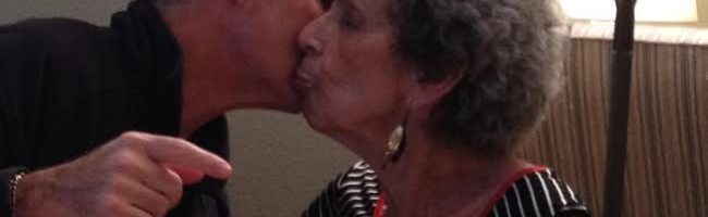 The final Thanksgiving took place three years ago in Overland Park, KS. My mother-in-law was battling cancer. She had moved into a small two bedroom apartment from the four bedroom house she had shared with one of Dan’s sisters and her two children. She had been undergoing chemo the previous year and we had all come in for that Thanksgiving too. This year she was on a different regime, was considered in remission, but we all wanted to be there, so our kids came in from both coasts, and we were all together. Two of Dan’s sisters lived in the same complex and did much of the cooking. We gathered around the small table, sitting on stools, bridge chairs, whatever worked. We saw his brother the day before. He was with his wife’s family. The featured photo is Dan kissing his mother. It is the final photo I have of the two of them together. We went around the table, saying what we were grateful for, enjoyed our meal together, enjoyed being together. The next time we were together was the following August, a few hours before Gladie died. She was cogent when we arrived and each had our time alone to say goodbye. She told me that I was never just her daughter-in-law, but I was always her fourth daughter. I had known her since I was 20 years old. She was always very good to me. I am grateful she was in my life.